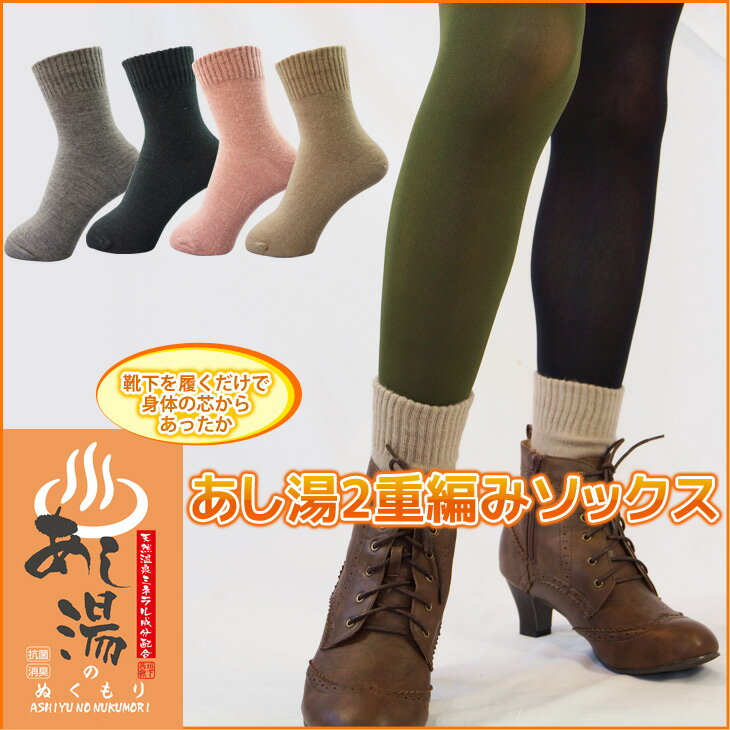 靴下 あたたかいくつした【奈良産】国産【日本製】【メール便対応】【冷えとり靴下】 あし湯 婦人2重編みソックス 血行促進 温泉効果 抗菌 消臭 吸湿 発熱 あったかい靴下 温かいセール 売れ筋