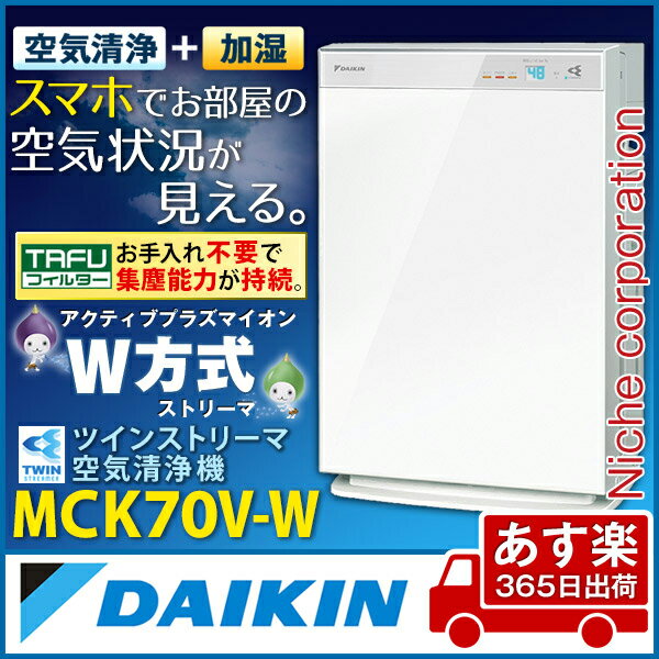 【最大2,000円OFFクーポン配布中】ダイキン 加湿ストリーマ空気清浄機 ホワイト MCK70V-W 花粉対策製品認証 加湿空気清浄機 31畳 加湿器 タバコ 花粉 ペット ホコリ ニオイ PM2.5